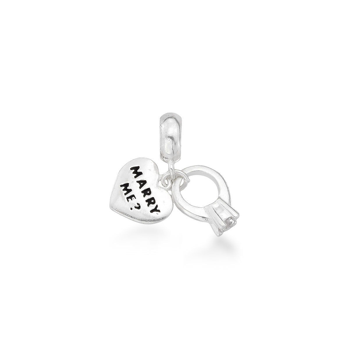 O Berloque anel de noivado é confeccionado em Prata 925 e possui um design em forma de coração com um lindo anel dentro, para você surpreender a pessoa que você mais ama.