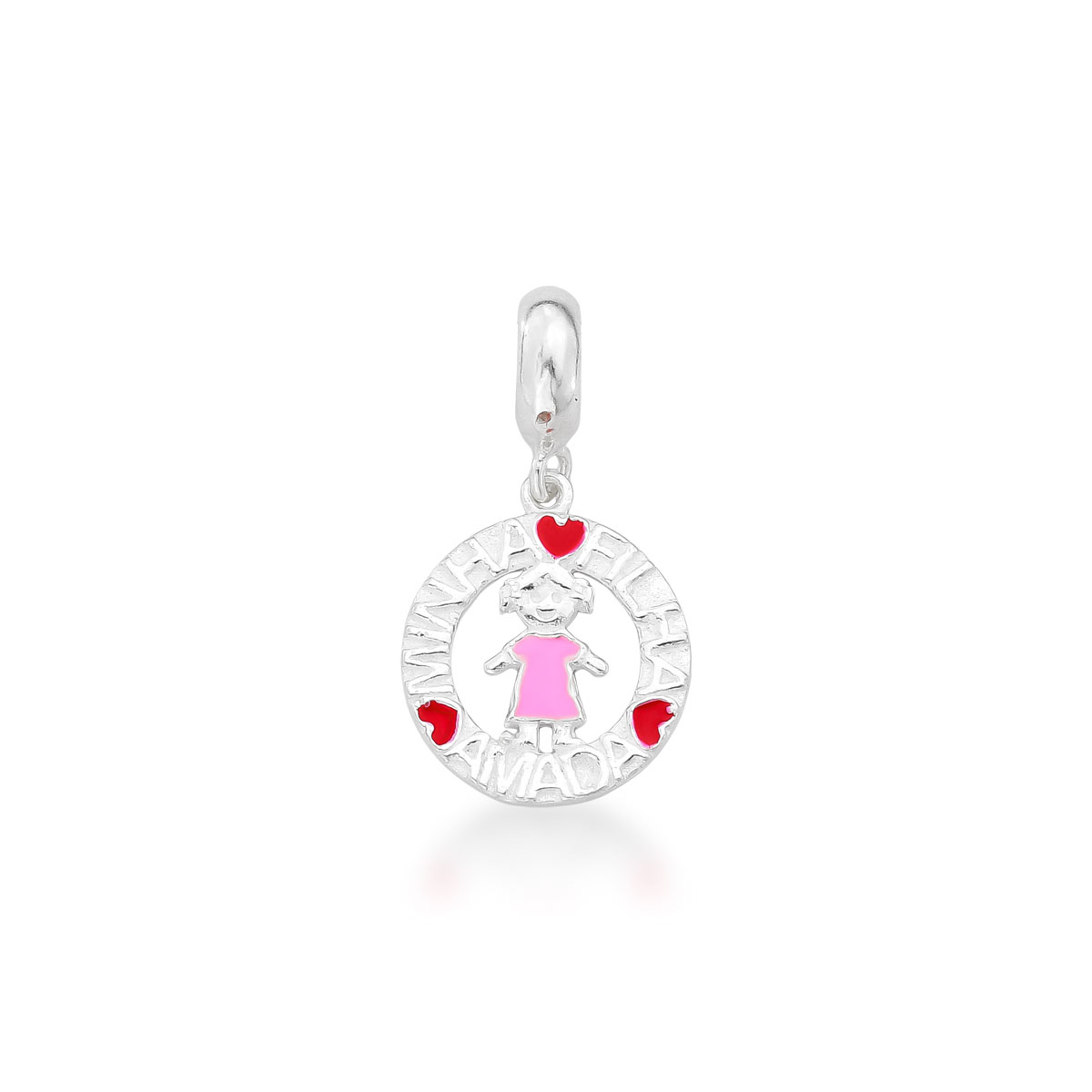 Lindo berloque minha filha amada e um pingente simbolizando o amor pela sua filha menina. Esmaltado na cor rosa e vermelho. Joia ideal para colocar na sua pulseira life ou para presentear quem você ama.