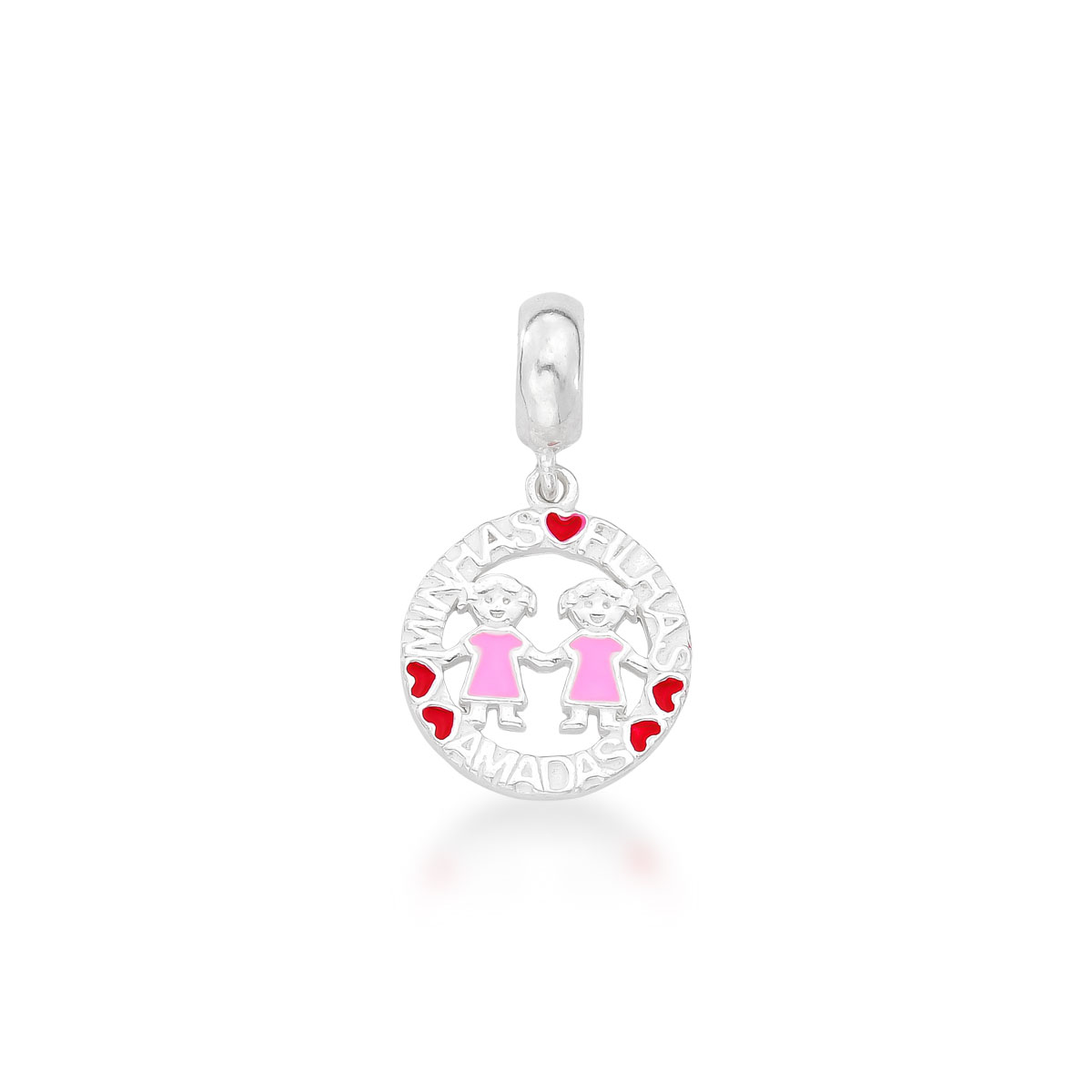Lindo berloque minhas filhas amadas e um pingente simbolizando o amor pela suas filhas. Esmaltado na cor rosa e vermelho. Joia ideal para colocar na sua pulseira life ou para presentear quem você ama.