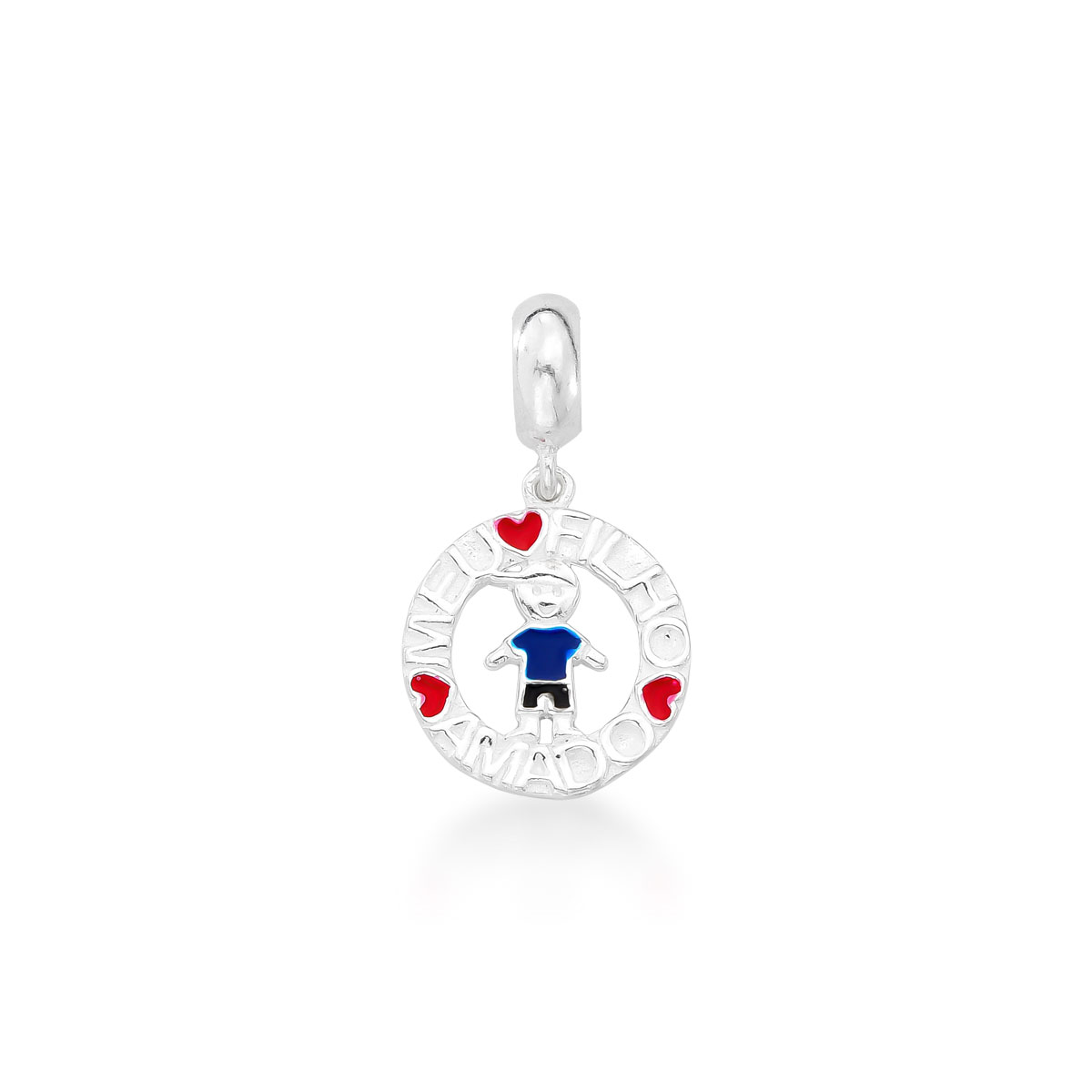 Lindo berloque meu filho amado e um pingente simbolizando o amor pelo seu filho menino. Esmaltado na cor azul e vermelho. Joia ideal para colocar na sua pulseira life ou para presentear quem você ama.