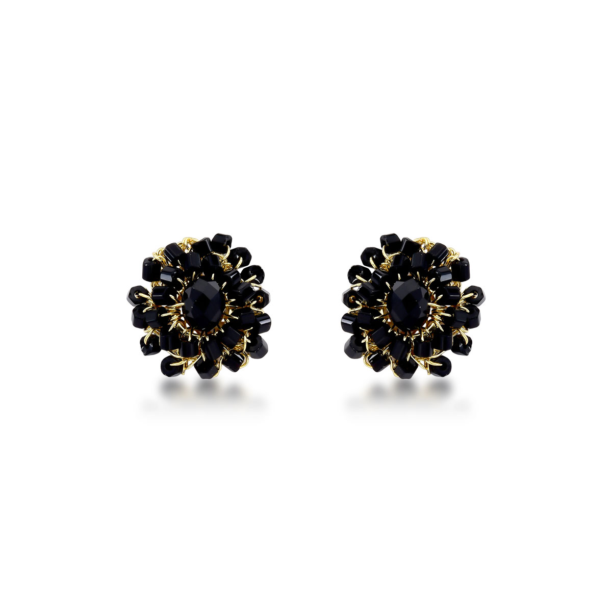 Brinco Crochê Amanda Preto Semijoia Banho de Ouro 18k
