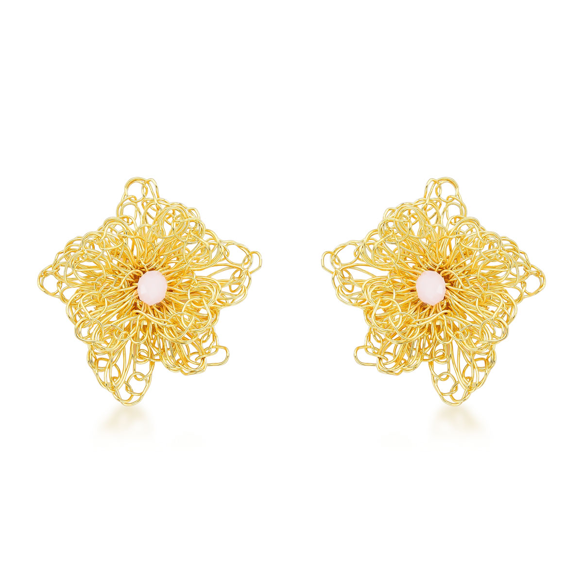 Brinco Crochê Flora Rosa Semijoia Banho de Ouro 18k