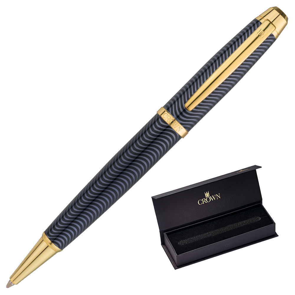 - DESCRIÇÃO: Caneta Crown Drezden Esferográfica com acabamento texturizado e detalhes dourado tem sua escrita com conforto e maciez. Mecanismo de torção e com carga esferográfica padrão Parker