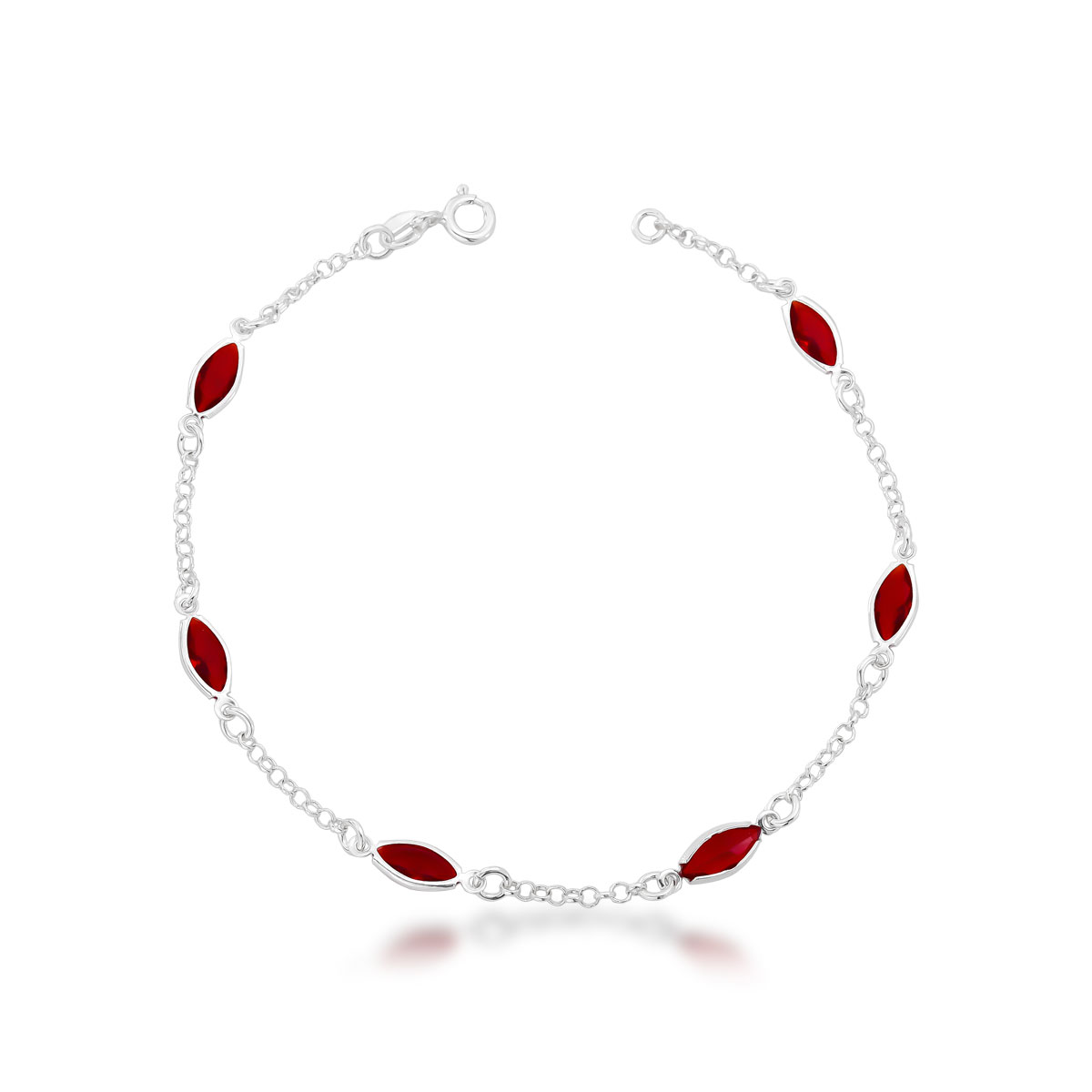 Linda pulseira no elo português com pingentes de zircônias na cor vermelho rubi. Joia ideal para montar aquela composição linda.