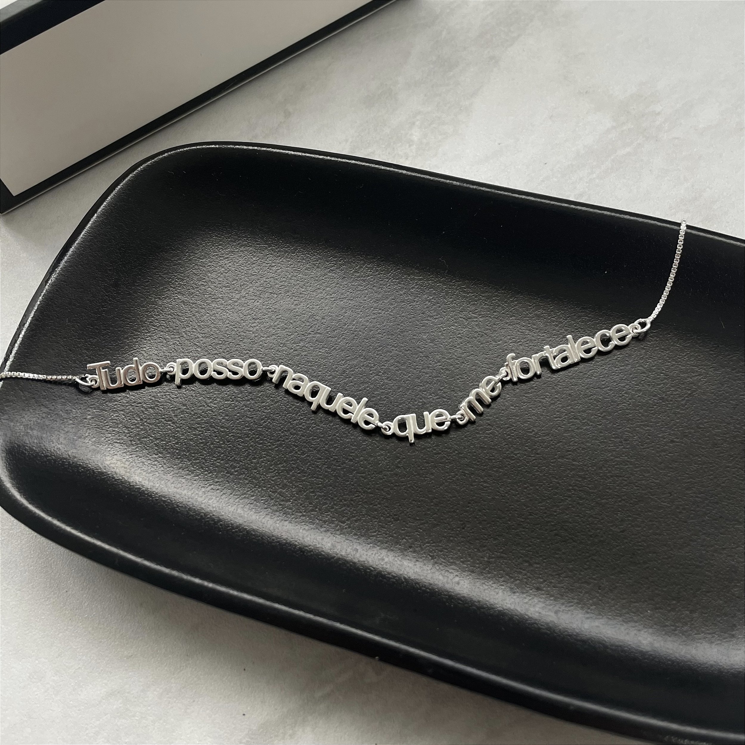 Pulseira maravilhosa com a frase Tudo Posso Naquele que Me Fortalece com um significado lindo de amor e proteção. Peça super delicada, uma ótima opção para presentear!!