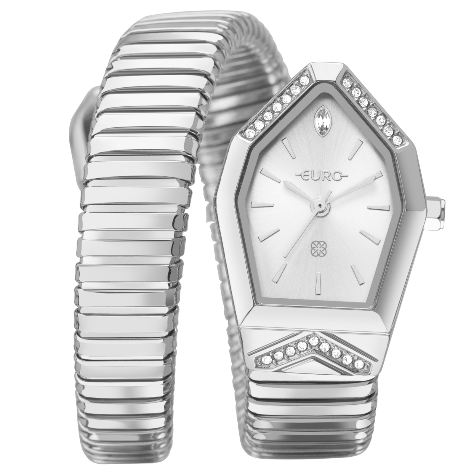 relógio euro feminino prata, relógio euro serpente original, relógio feminino duas voltas, pulseira de cobra euro, relógio bracelete prata feminino, relógio euro eu2035zal/5k, relógio feminino de luxo prata, relógio joia feminino, relógio feminino sem fecho mola, presente dia dos namorados mulher, presente feminino elegante, relógio analógico prateado delicado, relógio euro feminino mostrador prata com pedras, onde comprar relógio euro original, relógio feminino social festa