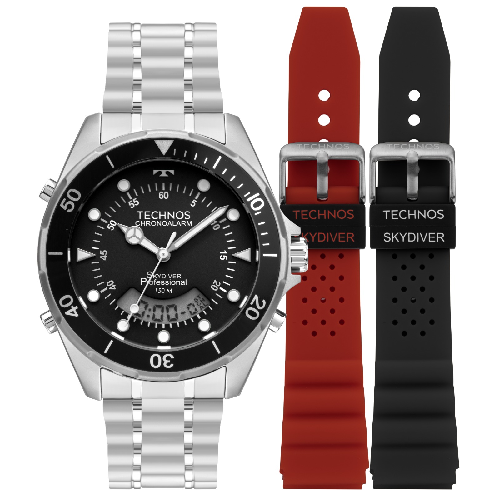 relógio technos masculino, relógio technos skydiver kit, kit relógio technos com pulseira, technos skydiver prata pulseira de silicone, wt2060ac/t1p, relógio fundo preto masculino, relógio masculino anadigi prata, relógio esportivo masculino, kit relógio pulseira intercambiável, relógio a prova d'agua 150m 15 atm, relógio masculino cronômetro digital, presente para homem esportivo kit, onde comprar relógio technos original, relógio technos skydiver original