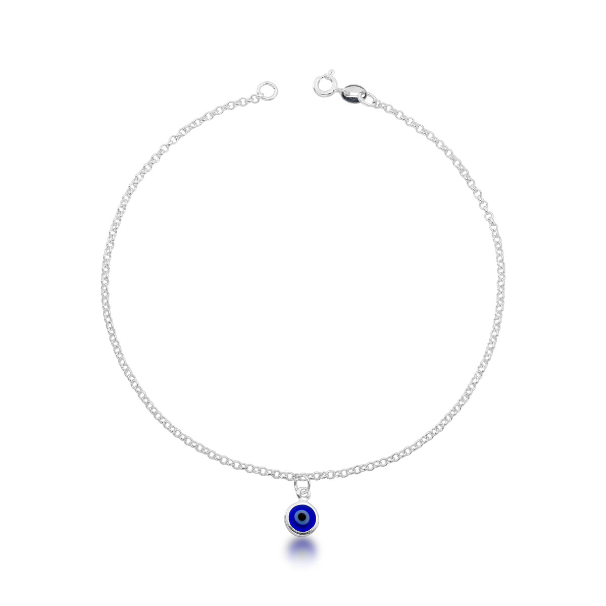 A tornozeleira é confeccionada em Prata 925 e possui um design delicado com o pingente de olho grego que além de lindo é um símbolo contra a inveja, mau-olhado e energias negativas.