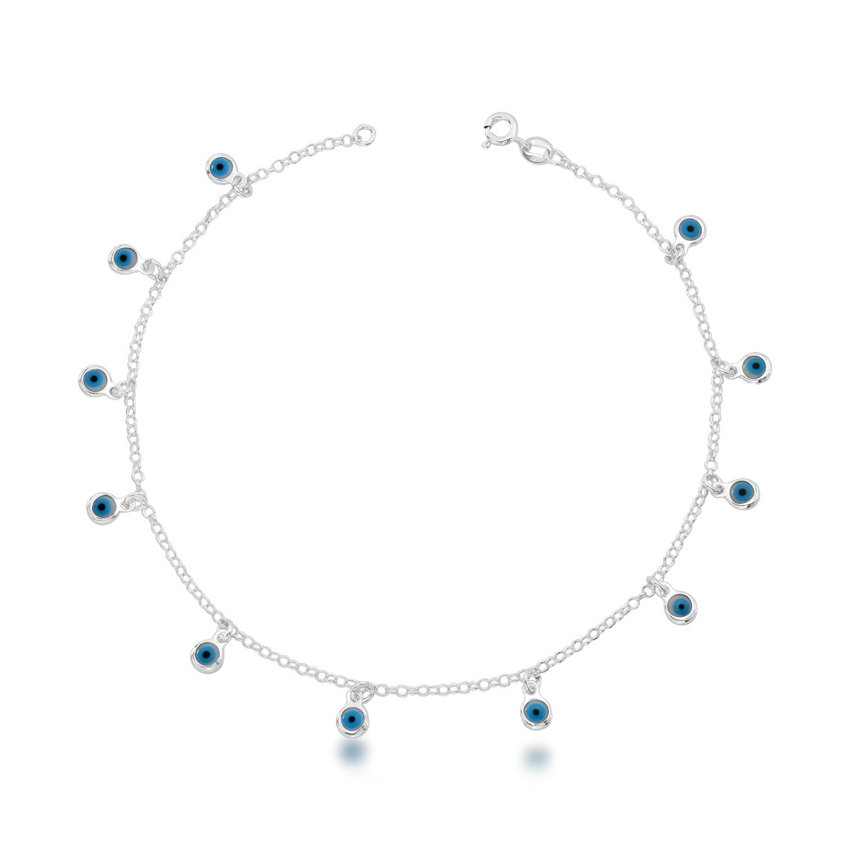 Tornozeleira Pingentes Olho Grego Azul Prata 925